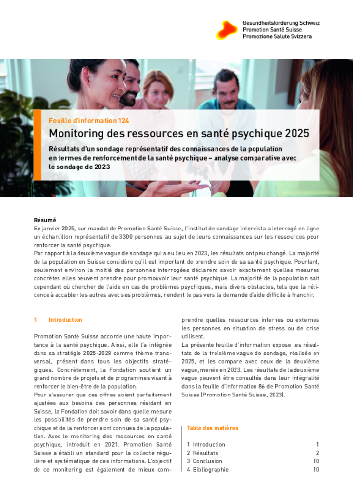 À propos du monitoring des ressources en santé psychique et de l’engagement de Promotion Santé Suisse